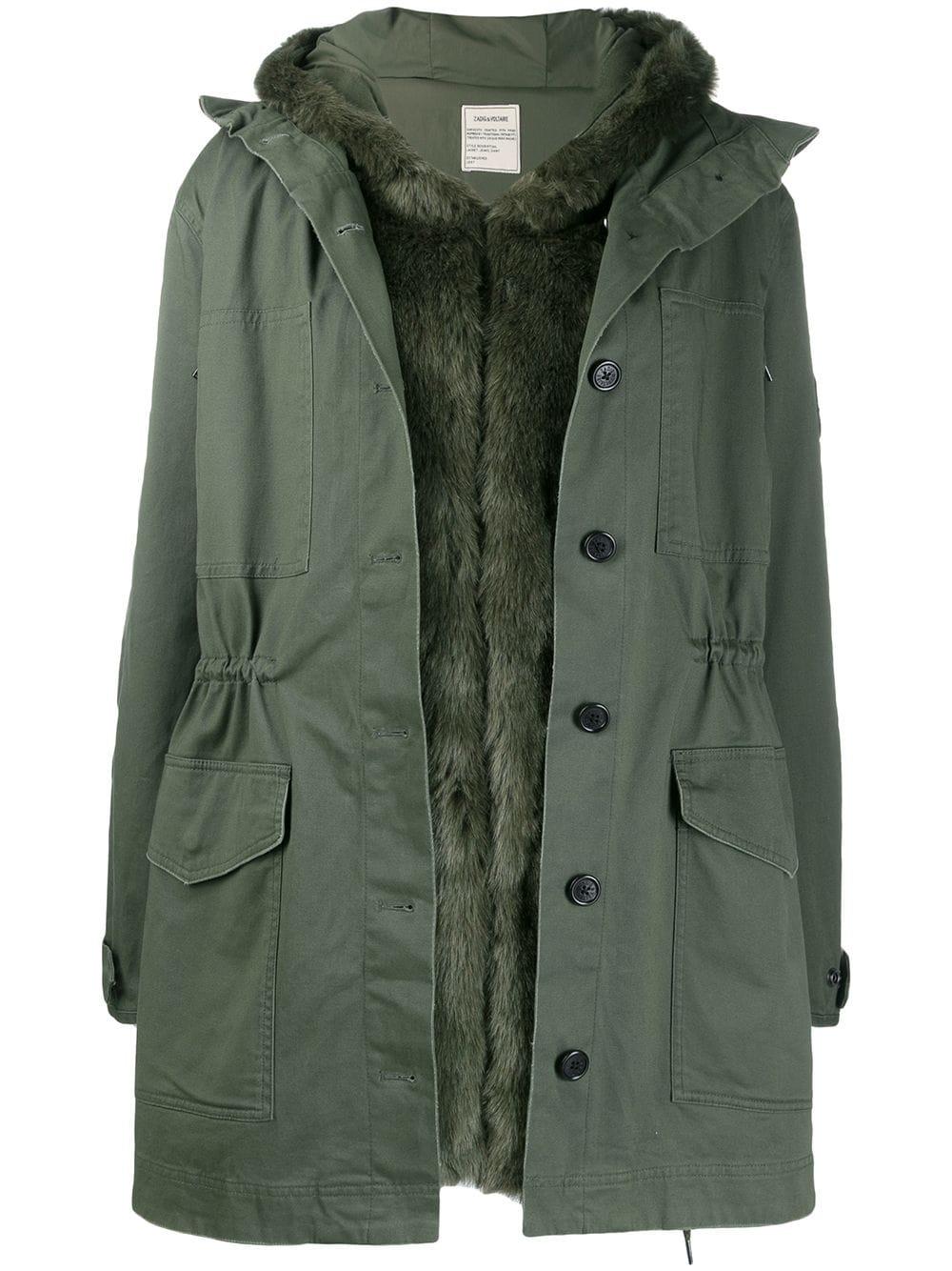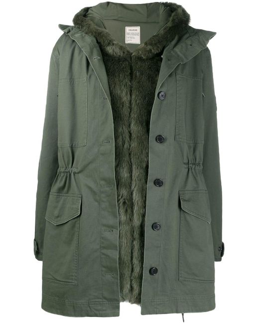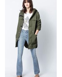 Parka à capuche Zadig & Voltaire avec capuche, coupe oversize, manches longues, lien de resserrage à la taille, poches devant et boutonnière sur le devant. Coloris : vert